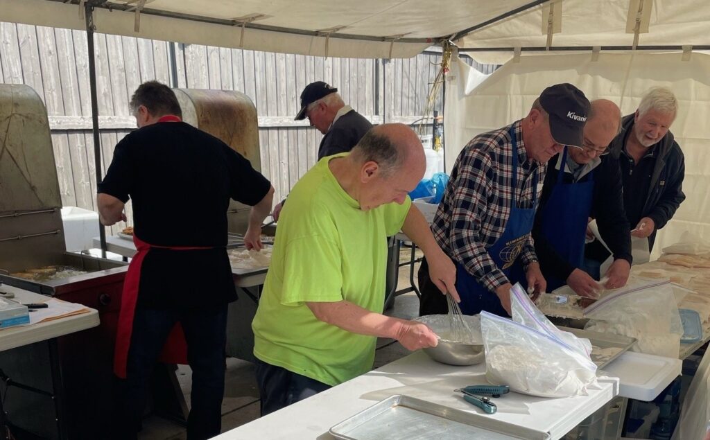 The Elmira Kiwanis Club runs fish and chip dinners as fundraisers and funraisers. On April 19th of 2025 (Good Friday), we served over 350 scrumptious dinners of 1/2 pound haddock. french fries, cole slaw and pie to our hungry supporters. We’re planning an encore for the fall of 2025. Stay tuned for the time and place.